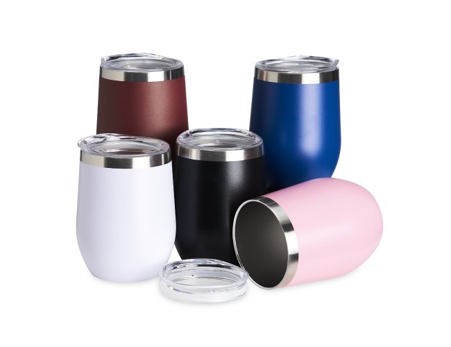 Copo térmico de capacidade de 320ml, feito em inox, com parede dupla e tampa plástica (livre de BPA) com bocal para um consumo mais rápido e prático.