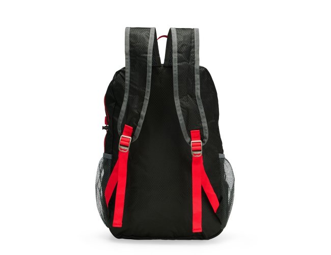 Mochila dobrável confeccionada em poliéster impermeável e detalhes em plástico, com fechamento em zíper e capacidade máxima de 16 litros. Possui compartimento interno com divisória para notebooks de até 15,6 polegadas. Conta com bolso frontal com zíper, dois bolsos laterais em tela com elástico, alça superior em nylon e duas alças traseiras com tecido telado interno. Acompanha saco em nylon com regulagem, que facilita o transporte quando dobrada.
